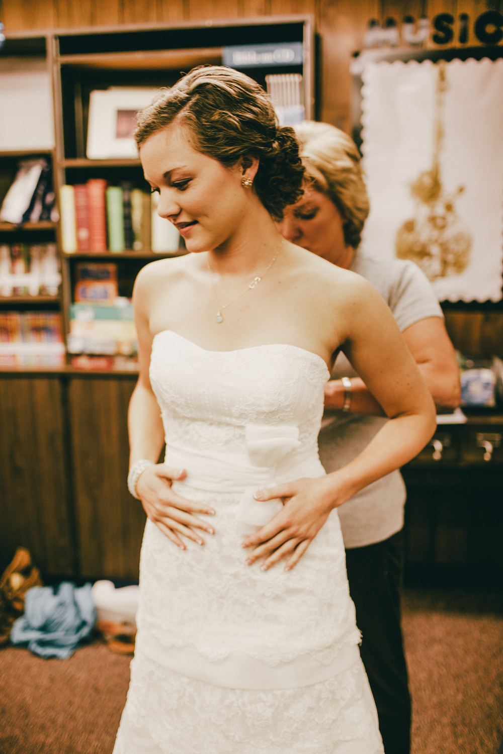 I woke up early the morning of the wedding, as I had the past few days. My friends Sandy and Danae were at the house with me, and we headed to the church around ten to start hair and makeup. It was drizzly and grey, and the whole week prior called for scattered thunderstorms. A little unnerving when the reception was planned to be outside in a tent held up by metal poles…