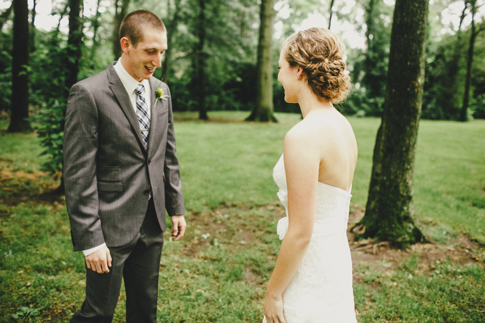 Around three in the afternoon, we were ready to start pictures with our amazing photographer, Chloe Jennings. The skies weren’t exactly blue, but the rain had stopped, and I was thrilled. Thomas and I decided to do a first look for a number of reasons. First, having an evening ceremony, it made sense to not make our guests wait for us afterwards. Also, we liked the idea of talking about the day and being able to spend more of it together. My nerves were immediately settled when I saw him.