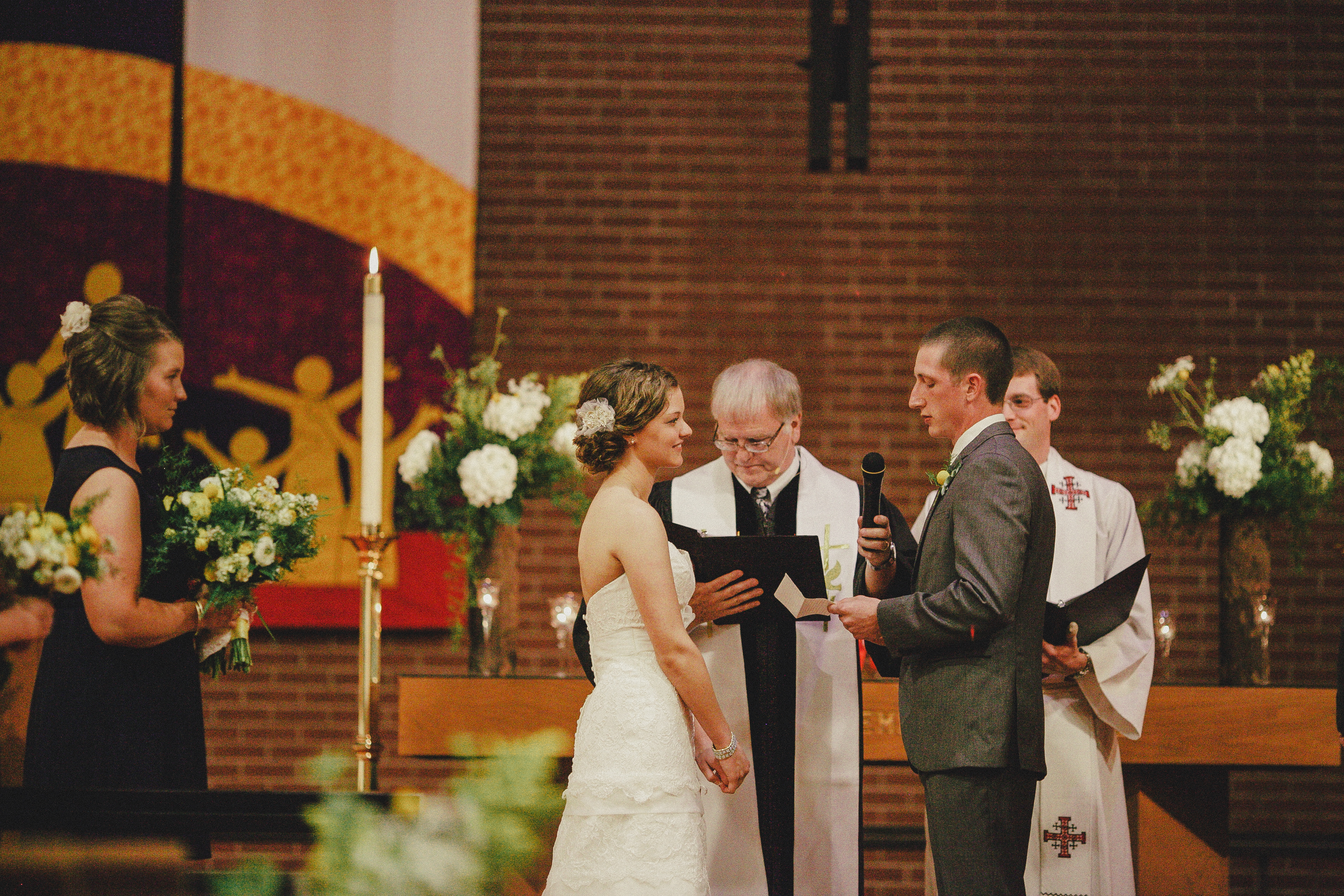 Our ceremony was held at 7pm in the church that we grew up in and still attend. It just made sense. We had our current pastor officiate, along with the pastor who confirmed us into the church in 7th grade. It was so special to have them both there.
